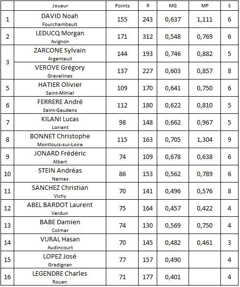 C'est finalement Pierre Soumagne (Soissons) qui remporte le tournoi. Cédric se classe 5ème avec une moyenne générale de 1,270.