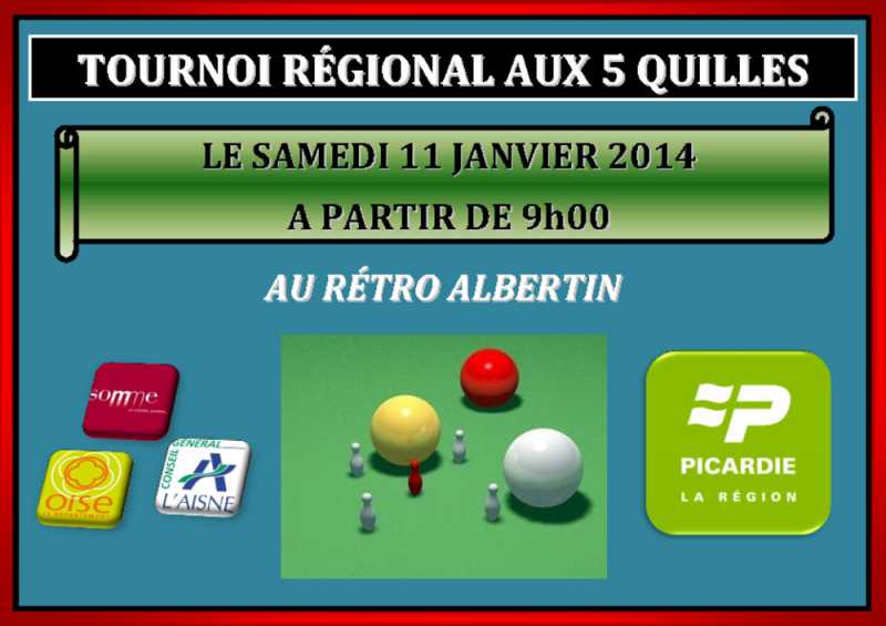 Ce samedi à lieu à Albert un tournoi régional aux 5 Quilles, 14 quillards sont inscrits et la compétition se joue en double KO.