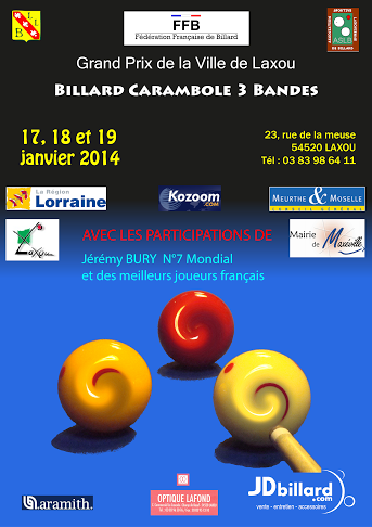 Le 3ème tournoi national de la saison aux 3 Bandes a lieu ce week-end à Laxou en Lorraine, Valéry Callens, Kévin Perrotin et Cédric Melnytschenko sont les 3 Albertins inscrits à ce tournoi.