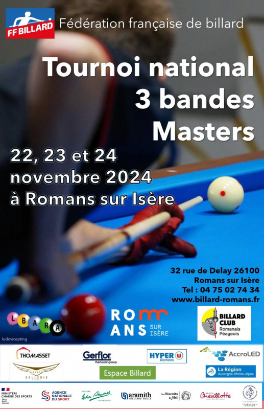 Ce week-end, deux Albertins disputeront à Romans-sur-Isère le deuxième tournoi national au 3 bandes de la saison, Jérôme Galerne et Cédric Melnytschenko font partie des 40 joueurs inscrits. Jérôme débutera la compétition le vendredi par les poules de qualification tandis que Cédric, en tant que tête de série, entrera en lice à partir du samedi.