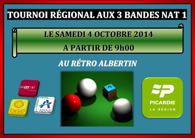 C'est reparti pour une nouvelle saison et c'est au Rétro Albertin qu'aura lieu samedi le 1er tournoi régional aux 3 Bandes Nat 1, 12 joueurs sont convoqués et joueront chacun 4 matchs sur 3,10m ou 2,80m selon le tirage au sort.