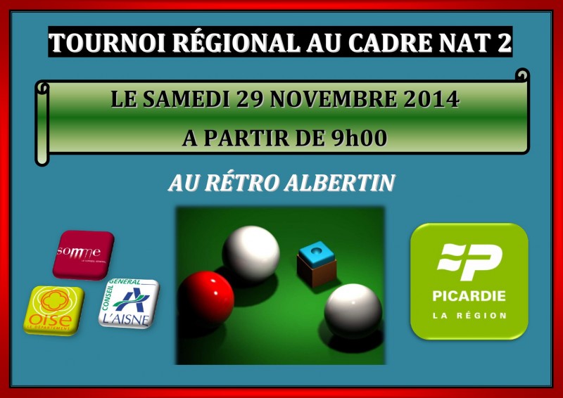 Samedi à partir de 9h00 se déroulera le 2ème tournoi régional de la saison au Cadre Nat 2, 6 joueurs vont se rencontrer tout au long de la journée, les parties se jouent en 100 points limitées à 15 reprises sur 3,10m ou 2,80m.