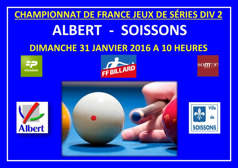 Dimanche à partir de 10 heures, Albert reçoit Soissons pour le compte du championnat de France aux jeux de séries Div 2 par équipes, les deux équipes se rencontreront deux fois.