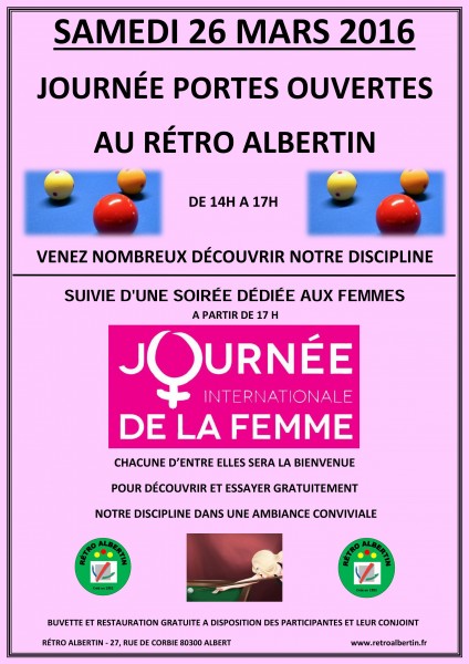 Le samedi 26 mars, le Rétro Albertin organise une journée promotion du billard dans ses locaux.