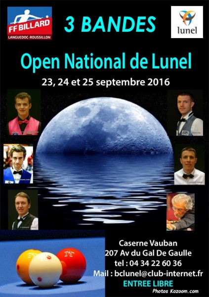 Comme chaque année maintenant, le club de Lunel (34) organise un tournoi open aux 3 Bandes. La compétition se joue par handicap selon le niveau des joueurs. 60 joueurs se sont inscrits et seront divisés en 10 poules de 6, les premiers de chaque poule seront qualifiés pour les 1/8èmes de finale ainsi que les 6 meilleurs deuxièmes.
