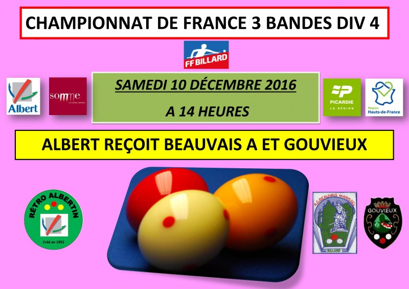 Championnat de France aux 3 Bandes Div 4 par équipes (phase régionale) :