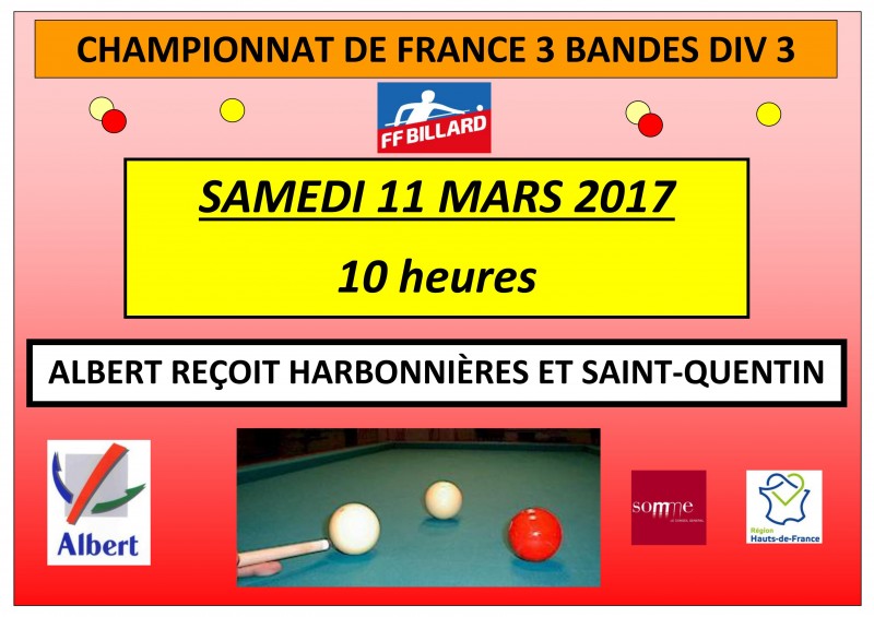 Championnat de France par équipes aux 3 Bandes Div 3 (phase régionale) :