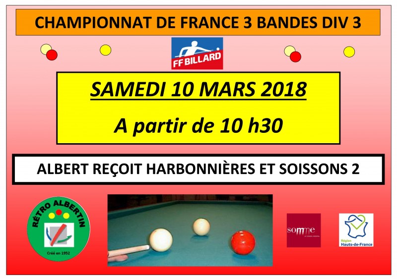 Championnat de France aux 3 Bandes Div 3 par équipes (phase régionale) :