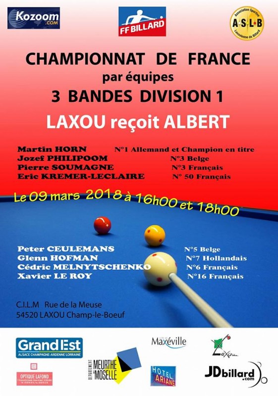 Championnat de France aux 3 Bandes Div 1 par équipes :