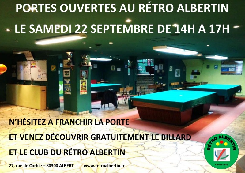 Le même jour de 14 heures à 17 heures, le Rétro Albertin ouvrira ses portes et pourra accueillir toutes les personnes désirant pratiquer le billard ou découvrir le club et ses locaux, des membres du club seront présents et pourront répondre à toutes vos questions.