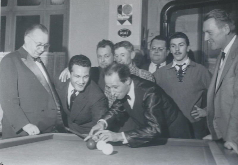 Au cours de cette journée, il initie au billard le boxeur, Sauveur Chiocca, Champion de France catégorie Welter, qui, pour l'anecdote, apprendra la boxe à Alain Delon pour le préparer au film "Rocco et ses frères" dans lequel il fait une apparition.