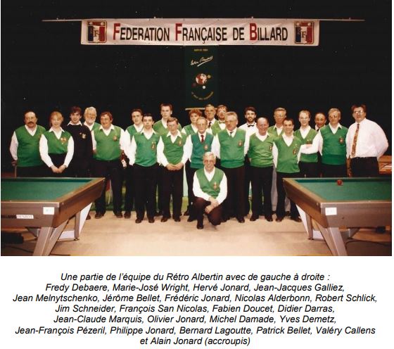 Même si Didier est absent du podium, Alain Jonard et son équipe ont une nouvelle fois relevé un défi. La fête du billard est maintenant terminée, mais les membres du Rétro Albertin garderont longtemps en mémoire ces images de joie, de déception aussi parfois mais aussi les sourires radieux des huit participants à l’heure de la remise des récompenses.