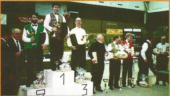 Retour vers Olivier Jonard qui part donc en déplacement à La Baule les 16, 17 et 18 avril 1993 pour y disputer la finale de France à la bande 1ère catégorie nationale, accompagné de son ami fidèle, Valéry Callens. Le plateau est très relevé, les adversaires d’Olivier ont presque tous déjà été champion de France. L’albertin débute timidement son championnat mais ne perd pas, une victoire contre Mouquet et un match nul contre Joly sans grosse moyenne. La deuxième journée allait être plus faste pour Olivier, il enchaîne les victoires contre Labeye, Beraud et Zahner à plus de 5 de moyenne.
