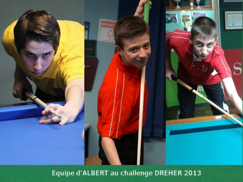 Ce championnat regroupera 5 équipes, parmi lesquelles la formation Albertine, qui sera composée de Matthieu Jonard, Yohann Alderbonn et Enzo Riquart. Ce dernier, grand espoir départemental, est licencié à Vignacourt et sort d'une saison fantastique, au cours de laquelle, il a décroché le titre de Champion de France Cadets 3 bandes, une médaille d'argent au Championnat d'Europe 3 bandes cadets, et une médaille de bronze au championnat de France partie libre cadets.