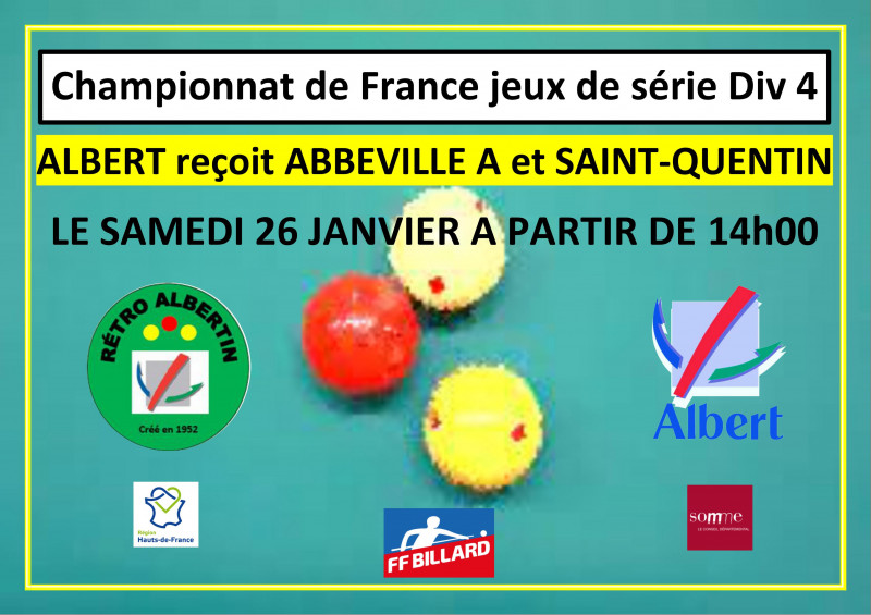 Albert se déplace vendredi à Laxou pour le compte de la 4ème journée du championnat de France aux 3 Bandes Div 1 par équipes.
