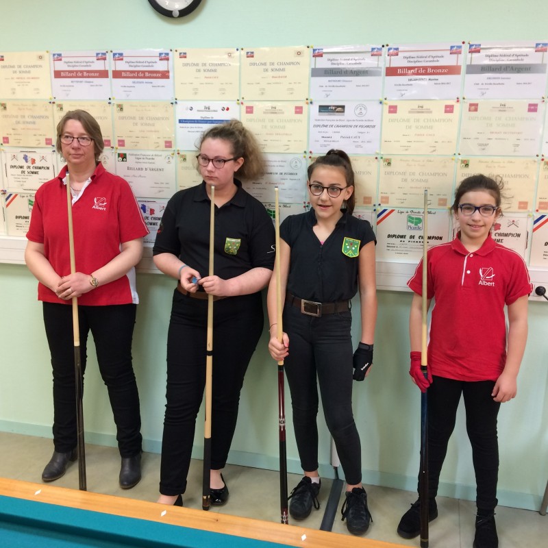 Avec trois victoires au compteur, Marie-Jo remporte le titre de championne de Somme. Mélina qui gagne un match et en perd deux prend la 3ème place. Les Frivilloises, Joy Tomasi et Clémence Bettefort, prennent les 2ème et 4ème places;