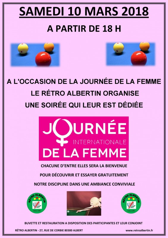 Cette soirée a rencontré un vif succés puisque plus de 15 féminines sont venues et se sont initiées au billard ainsi que leur conjoint.