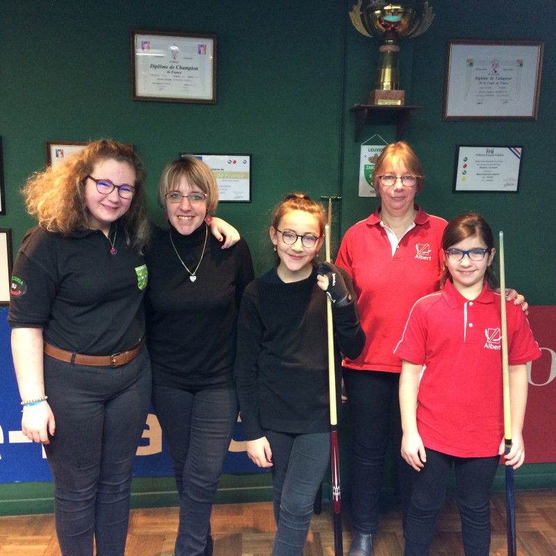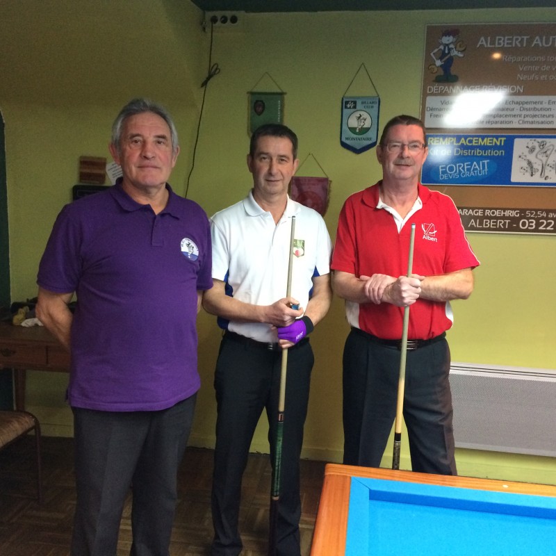 Les Albertins gagnent un match 4 à 2 avec des victoires de Raphaël Jonard à la Bande et Jean-Pierre Facquier aux 3 Bandes puis s'inclinent sur le même score au second match avec une victoire de Stéphane Potez à la Partie Libre.