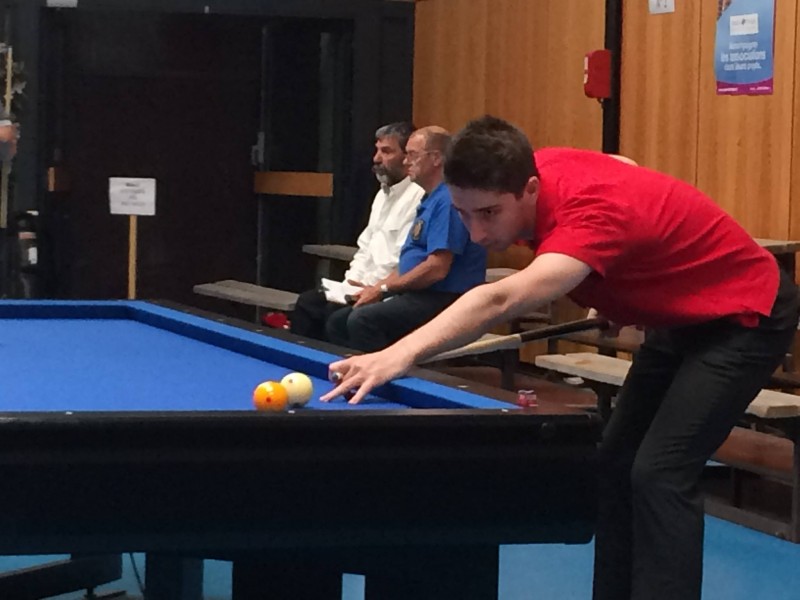 Raphaël gagne son 1er match contre Alexandre Portier (Denain) 20 à 12 en 34 reprises soit la belle moyenne de 0,588 mais loupe complétement son 2ème match contre Adrien Carette (Saint-Quentin) en s'inclinant 20 à 8 en 53 reprises.