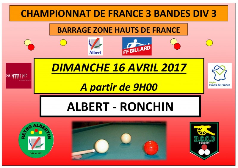 Cette compétition se déroulera au club du BCCO Ronchin sur 4 billards. Nous les remercions vivement pour cet accueil.